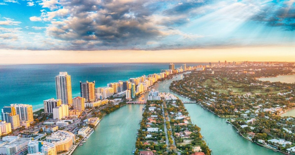 Sun-drenched Miami stretches along the southern tip of Florida by the Atlantic Ocean. The city is surrounded by Everglades National Park to the west as well as Biscayne Bay to the east and south.